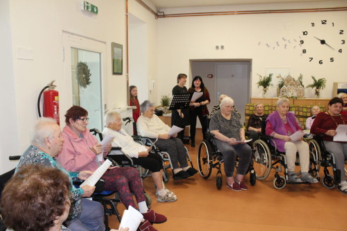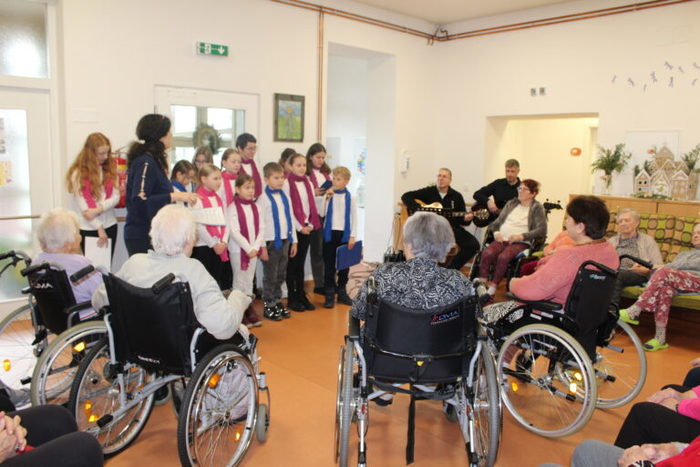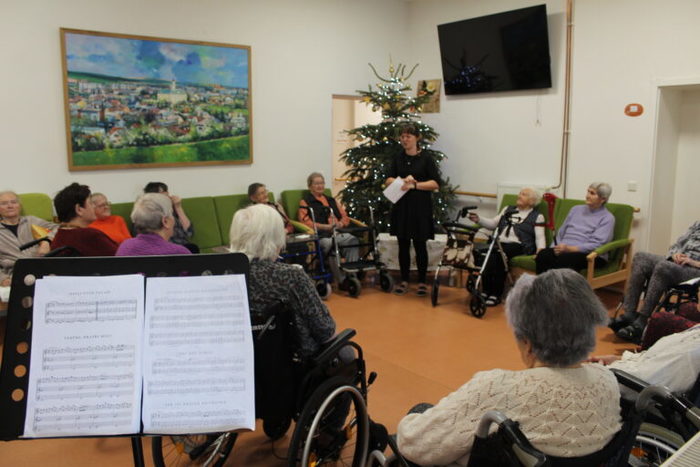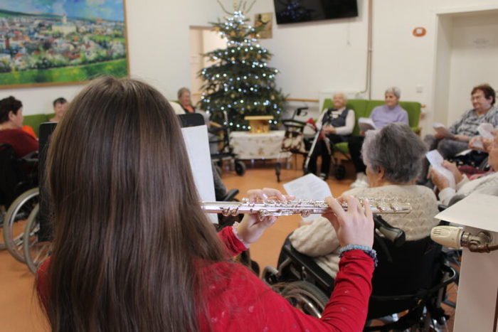 Nový rok jsme začali koledováním u vánočního stromečku a u jesliček. S klienty jsme si zazpívali vánoční písně a koledy od těch klasických až po ty moderní. Doprovodila nás příčná flétna, klavír, hrací zvonečky a orffovy nástroje.
