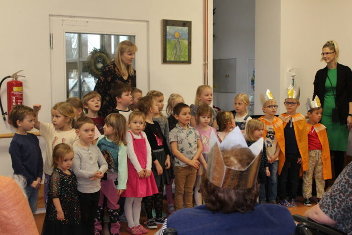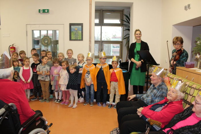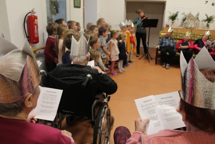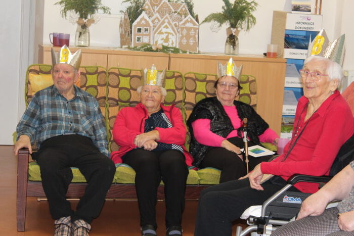 Navštívili nás také Tři králové ze Staré Vsi. Děti z Mateřské a Základní školy Stará Ves si s našimi klienty nejprve vyrobili královské koruny a poté jsme si všichni společně zazpívali vánoční koledy za doprovodu houslí.