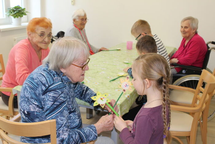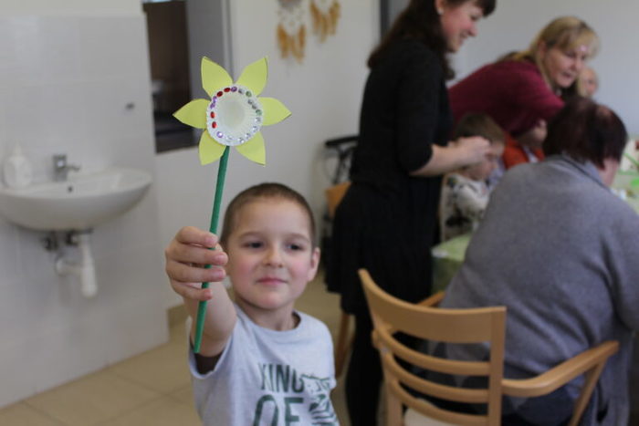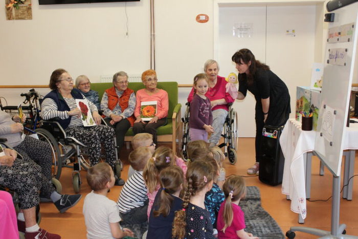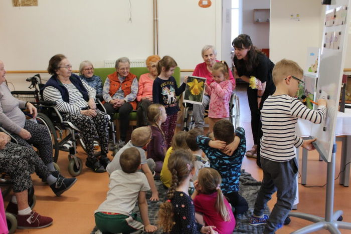 Naši klienti dnes měli opět možnost setkat se se svými „kamarády“ z MŠ Stará Ves. Společně se vydali do Duhového království a zachraňovali barvy duhy princezně Adélce. Poslechli si veršovanou pohádku O Palečkovi v podání paní Editky a na závěr si společně vytvořili narcisy, které nezvadnou. Děkujeme za milou návštěvu a krásné jarní dekorace, které už zdobí naši terasu.