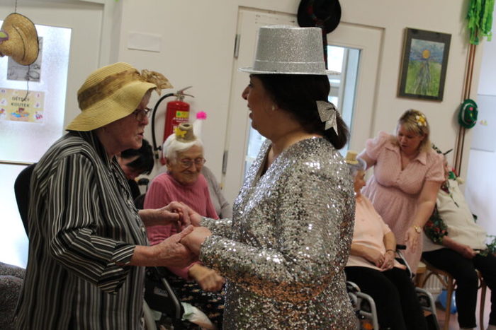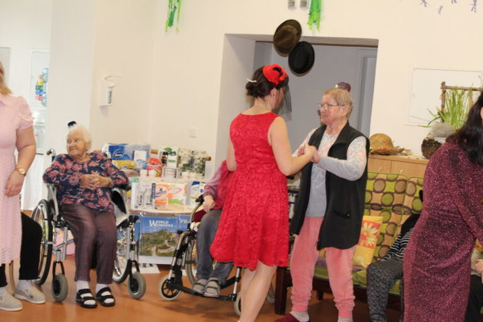 26.3.2025 se v našem domově konal Kloboukový ples. Klienti se na něj připravili výrobou papírových klobouků a čepic. Ten nejkrásnější z nich byl oceněn. Společně jsme si zatančili v rytmu polky, valčíku, „ptačáku“, nebo swingu a popu. Klienti si také zasoutěžili v házení míčků do klobouku, trefování se do klobouku poslepu nebo při tanci ve dvojicích s nafukovacím balónkem mezi čely. Na závěr nechyběla ani tombola a občerstvení v podobě kloboukových perníčků, koláčků a kanapek.