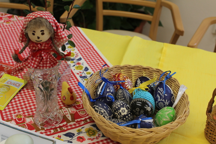 Dnes jsme s klienty zavzpomínali na Velikonoce, tradice, zvyky a rituály. Klienti se podívali, jak se malují kraslice voskem, dozvěděli se, jak vznikají madeirová vajíčka, prohlédli si nejrůznější techniky malování kraslic a dozvěděli se i zajímavosti o původu velikonočních symbolů.
