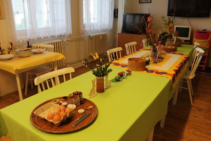 V rámci aktivizačního programu proběhlo dne 18. 03. 2016 skupinové „Velikonoční tvoření“ s arteterapeutickými prvky. Zúčastnění klienti si vyzkoušeli, pro ně neznámou, techniku malování voskových reliéfních velikonočních vajíček. K této technice není potřeba zvláštního vybavení jen zastrčený špendlík do konce tužky, rozehřáté voskovky a vyfouklá vajíčka.