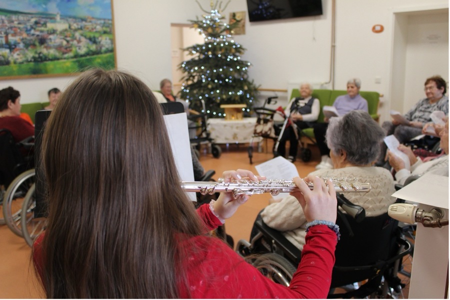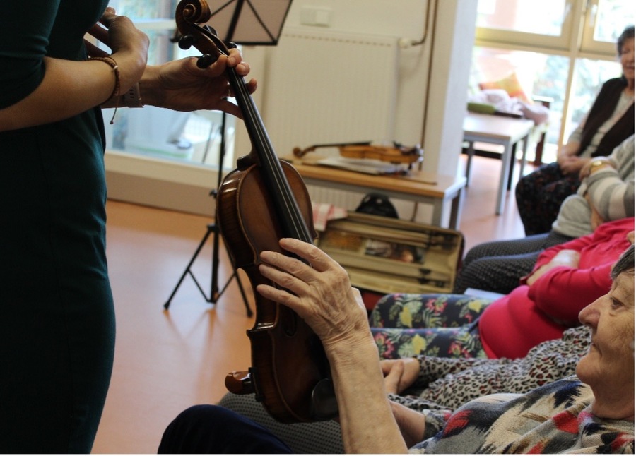 Pravidelně zveme také hudebníky, navštívila nás paní houslistka Julie Černá nebo harmonikář pan Richár, kteří našim klientům zahráli písně na své nástroje.