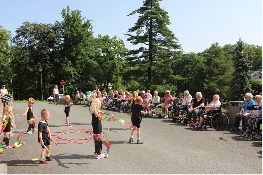 Pravidelně nás navštěvují děti ze základních a mateřských škol v okolí, které s našimi klienty vyrábí, čtou, zpívají nebo je potěší krásným vystoupením.